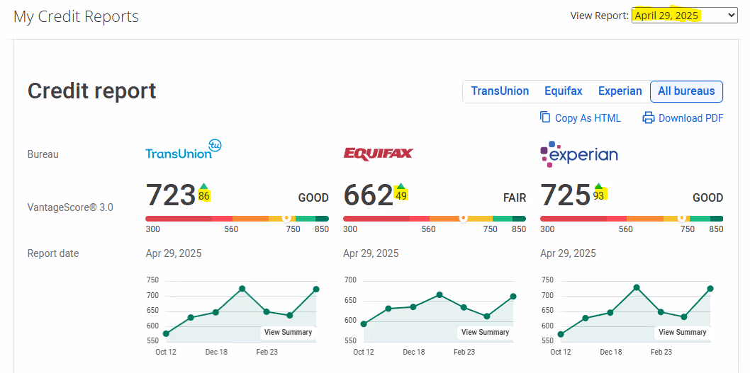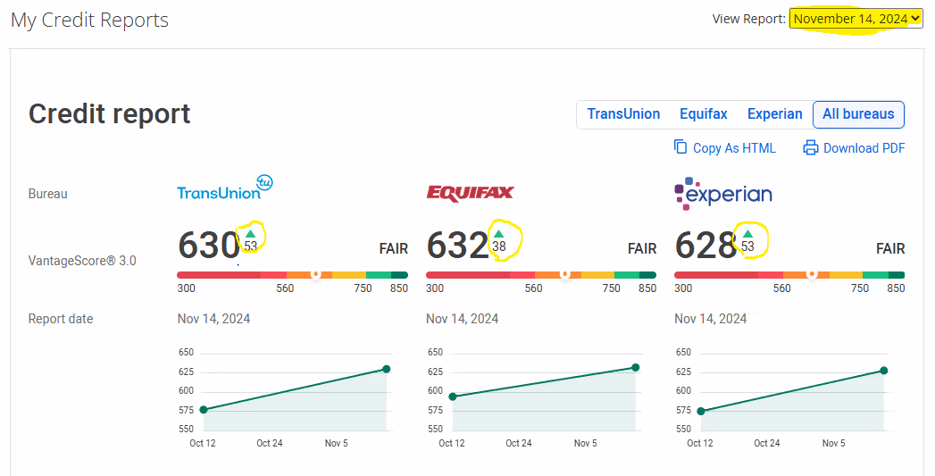 NOTE: It's normal for credit scores to fluctuate (up/down) throughout this process + Credit Utilization changes (how much used vs available).