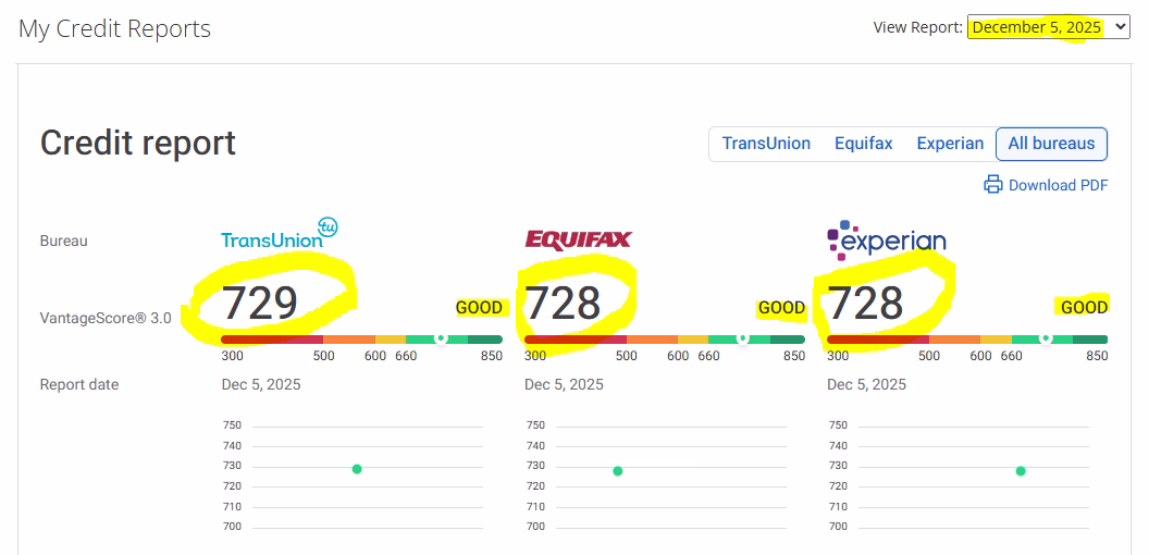NOTE: It's normal for credit scores to fluctuate (up/down) throughout this process + Credit Utilization changes (how much used vs available).